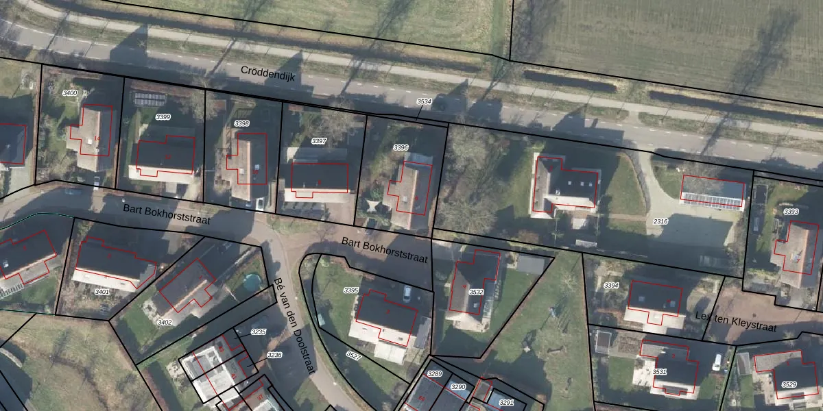 Gebruik de zoekbalk of klik op een perceel voor informatie over de adressen binnen dit perceel.