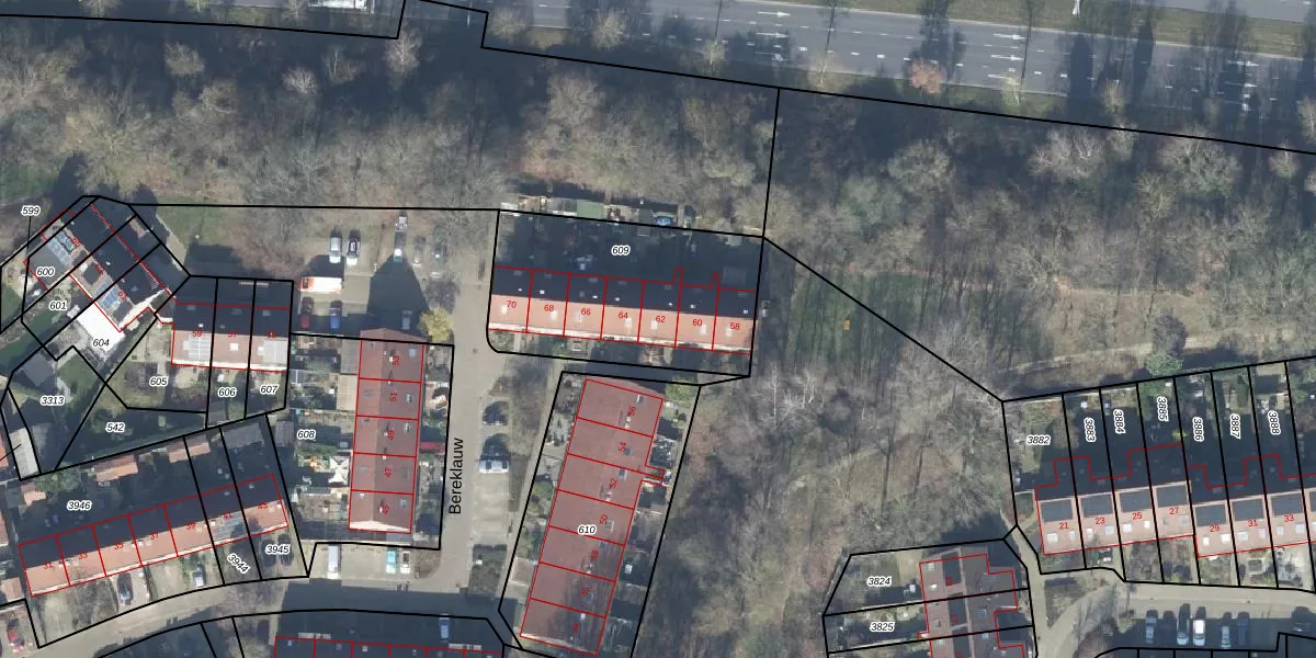 Het perceel waarop Bereklauw 62 staat heeft een oppervlakte van 866 m². Dit is een groot perceel. De perceeloppervlakte wordt geregistreerd door het Kadaster. Gedetailleerde informatie over de maten van dit perceel kunt u vinden in het rapport Kadastrale kaart met maatvoering van Bereklauw 62.