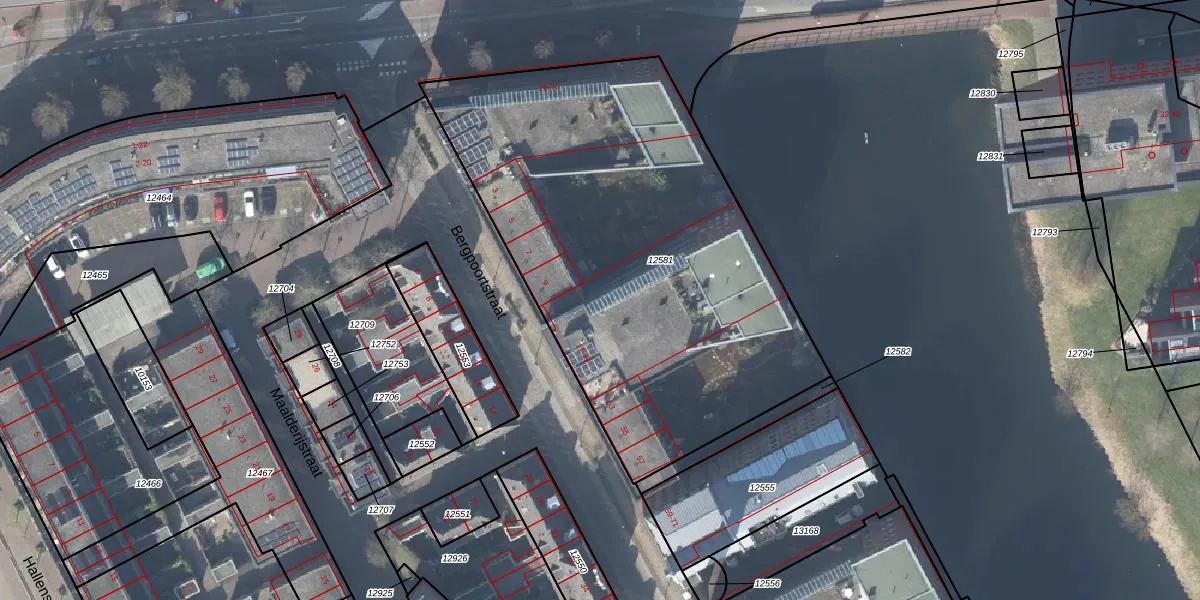 Het perceel waarop Bergpoortstraat 13 staat heeft een oppervlakte van 2527 m². Dit is een zeer groot perceel. De perceeloppervlakte wordt geregistreerd door het Kadaster. Gedetailleerde informatie over de maten van dit perceel kunt u vinden in het rapport Kadastrale kaart met maatvoering van Bergpoortstraat 13.