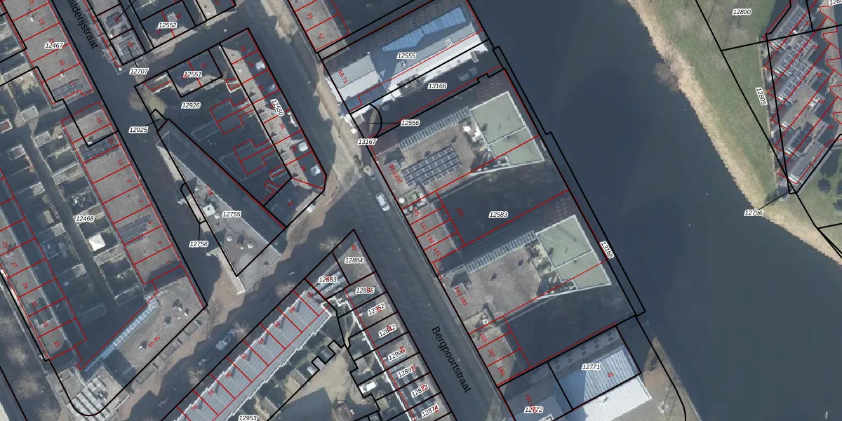 Het perceel waarop Bergpoortstraat 135 staat heeft een oppervlakte van 2464 m². Dit is een zeer groot perceel. De perceeloppervlakte wordt geregistreerd door het Kadaster. Gedetailleerde informatie over de maten van dit perceel kunt u vinden in het rapport Kadastrale kaart met maatvoering van Bergpoortstraat 135.