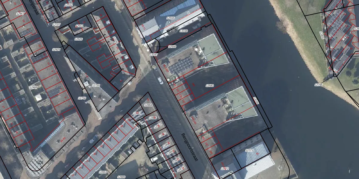 Het perceel waarop Bergpoortstraat 137 staat heeft een oppervlakte van 2464 m². Dit is een zeer groot perceel. De perceeloppervlakte wordt geregistreerd door het Kadaster. Gedetailleerde informatie over de maten van dit perceel kunt u vinden in het rapport Kadastrale kaart met maatvoering van Bergpoortstraat 137.