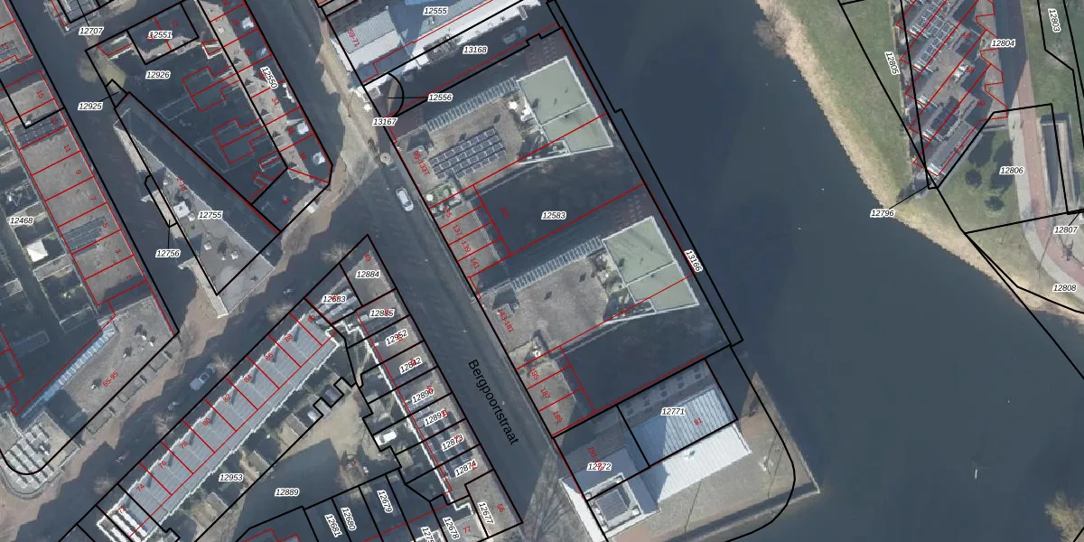 Het perceel waarop Bergpoortstraat 147 staat heeft een oppervlakte van 2464 m². Dit is een zeer groot perceel. De perceeloppervlakte wordt geregistreerd door het Kadaster. Gedetailleerde informatie over de maten van dit perceel kunt u vinden in het rapport Kadastrale kaart met maatvoering van Bergpoortstraat 147.