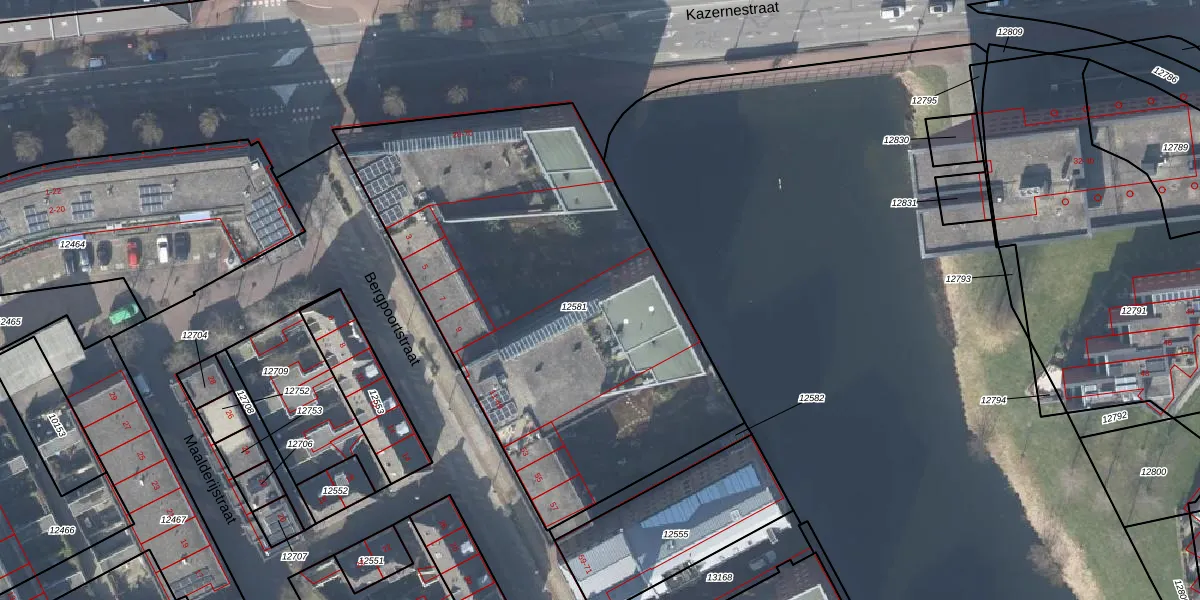 Het perceel waarop Bergpoortstraat 21 staat heeft een oppervlakte van 2527 m². Dit is een zeer groot perceel. De perceeloppervlakte wordt geregistreerd door het Kadaster. Gedetailleerde informatie over de maten van dit perceel kunt u vinden in het rapport Kadastrale kaart met maatvoering van Bergpoortstraat 21.