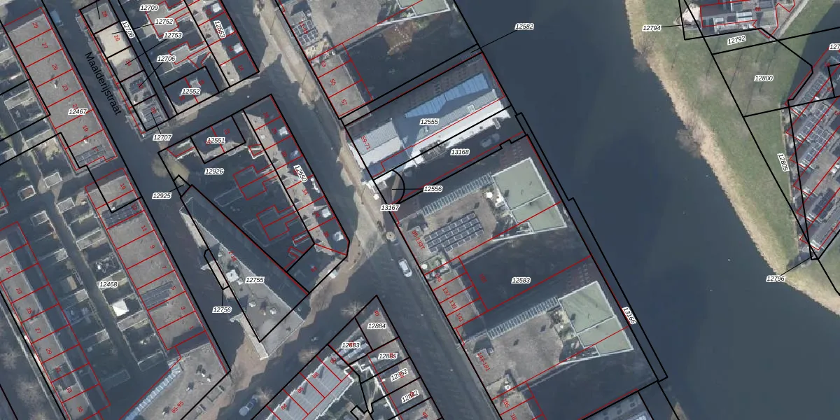 Het perceel waarop Bergpoortstraat 95 staat heeft een oppervlakte van 2464 m². Dit is een zeer groot perceel. De perceeloppervlakte wordt geregistreerd door het Kadaster. Gedetailleerde informatie over de maten van dit perceel kunt u vinden in het rapport Kadastrale kaart met maatvoering van Bergpoortstraat 95.