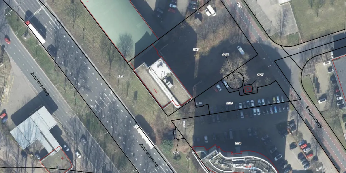 Het perceel waarop Bergweidedijk 8 staat heeft een oppervlakte van 2584 m². Dit is een zeer groot perceel. De perceeloppervlakte wordt geregistreerd door het Kadaster. Gedetailleerde informatie over de maten van dit perceel kunt u vinden in het rapport Kadastrale kaart met maatvoering van Bergweidedijk 8.