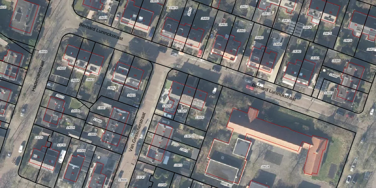 Gebruik de zoekbalk of klik op een perceel voor informatie over de adressen binnen dit perceel.