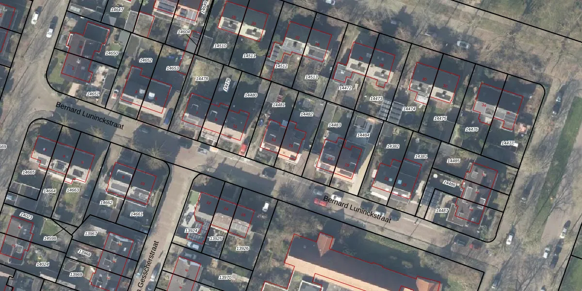 Bernard Luninckstraat 15 is gelegen op kadastraal perceel DVT00B14482. Deze kadastrale aanduiding is uniek en wordt gebruikt door het Kadaster om eigendomsrechten en andere zakelijke rechten vast te leggen. Het perceel maakt onderdeel uit van de kadastrale gemeente Deventer.
