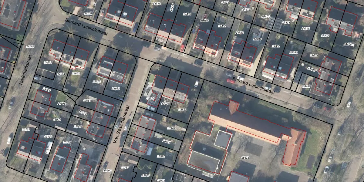 Gebruik de zoekbalk of klik op een perceel voor informatie over de adressen binnen dit perceel.