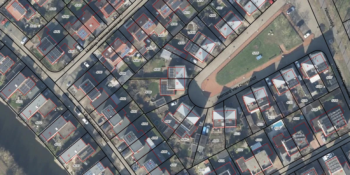 Gebruik de zoekbalk of klik op een perceel voor informatie over de adressen binnen dit perceel.
