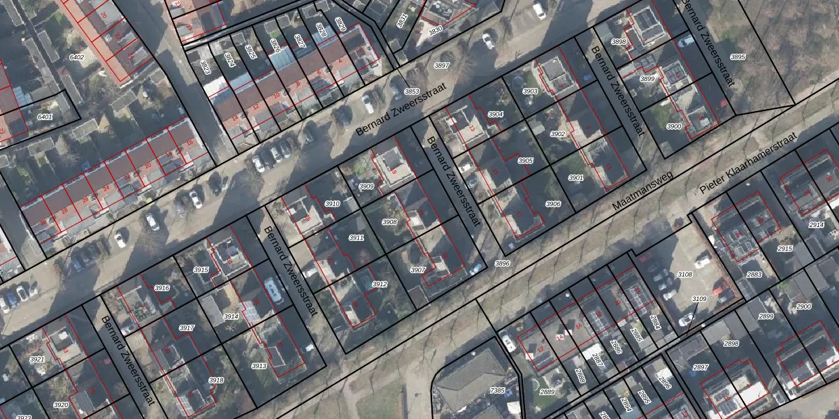 Gebruik de zoekbalk of klik op een perceel voor informatie over de adressen binnen dit perceel.
