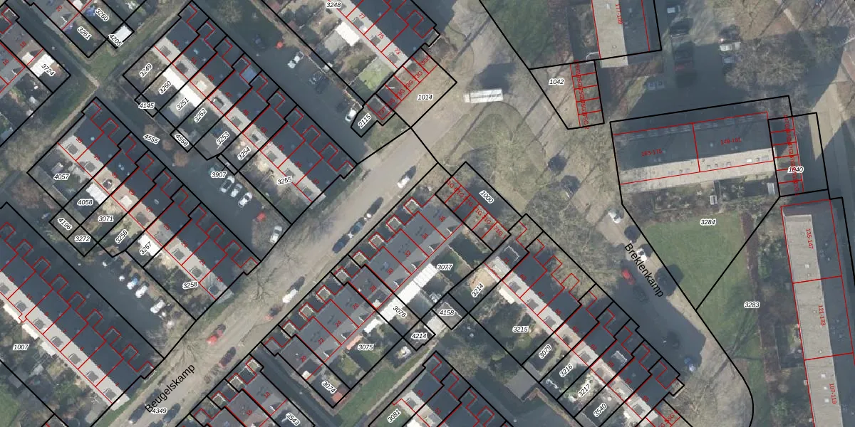 Het perceel waarop Beugelskamp 36 staat heeft een oppervlakte van 576 m². Dit is een groot perceel. De perceeloppervlakte wordt geregistreerd door het Kadaster. Gedetailleerde informatie over de maten van dit perceel kunt u vinden in het rapport Kadastrale kaart met maatvoering van Beugelskamp 36.