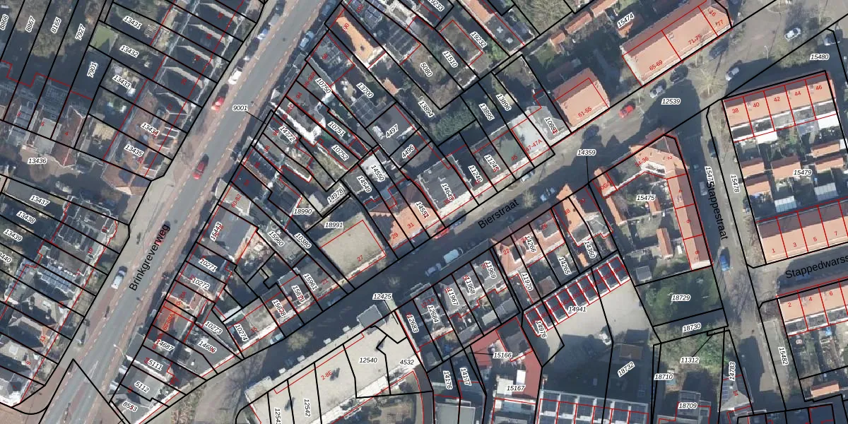 Het perceel waarop Bierstraat 33 staat heeft een oppervlakte van 81 m². Dit is een klein perceel. De perceeloppervlakte wordt geregistreerd door het Kadaster. Gedetailleerde informatie over de maten van dit perceel kunt u vinden in het rapport Kadastrale kaart met maatvoering van Bierstraat 33.