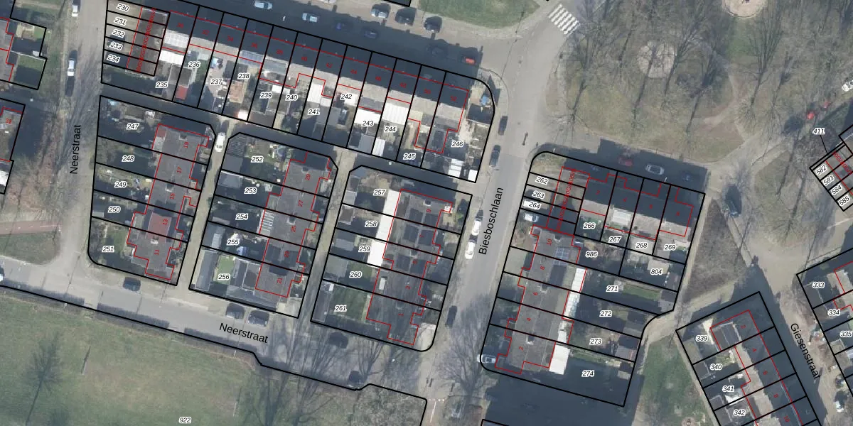 Het perceel waarop Biesboschlaan 9 staat heeft een oppervlakte van 275 m². Dit is een middelgroot perceel. De perceeloppervlakte wordt geregistreerd door het Kadaster. Gedetailleerde informatie over de maten van dit perceel kunt u vinden in het rapport Kadastrale kaart met maatvoering van Biesboschlaan 9.