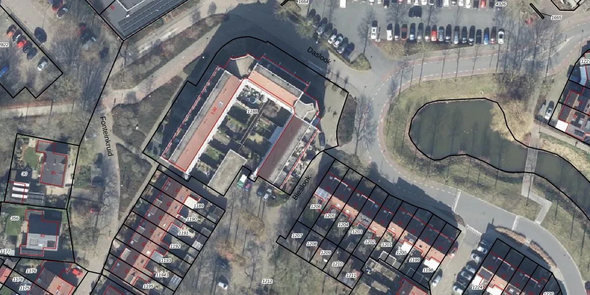 Het perceel waarop Bieslook 2 staat heeft een oppervlakte van 2309 m². Dit is een zeer groot perceel. De perceeloppervlakte wordt geregistreerd door het Kadaster. Gedetailleerde informatie over de maten van dit perceel kunt u vinden in het rapport Kadastrale kaart met maatvoering van Bieslook 2.