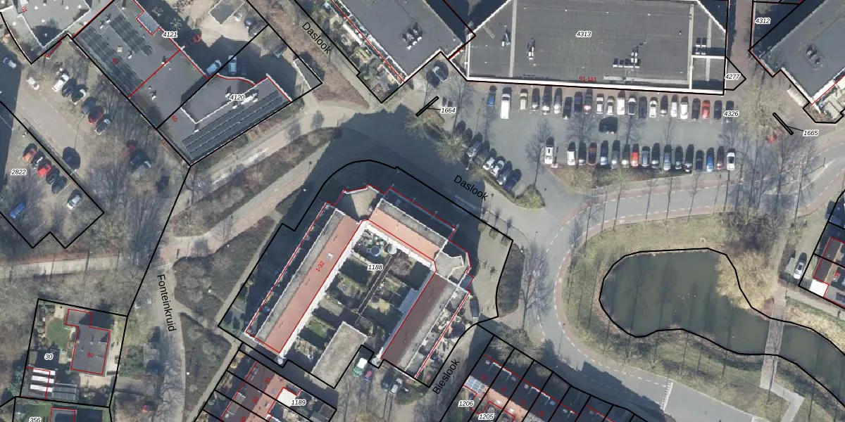 Het perceel waarop Bieslook 21 staat heeft een oppervlakte van 2309 m². Dit is een zeer groot perceel. De perceeloppervlakte wordt geregistreerd door het Kadaster. Gedetailleerde informatie over de maten van dit perceel kunt u vinden in het rapport Kadastrale kaart met maatvoering van Bieslook 21.