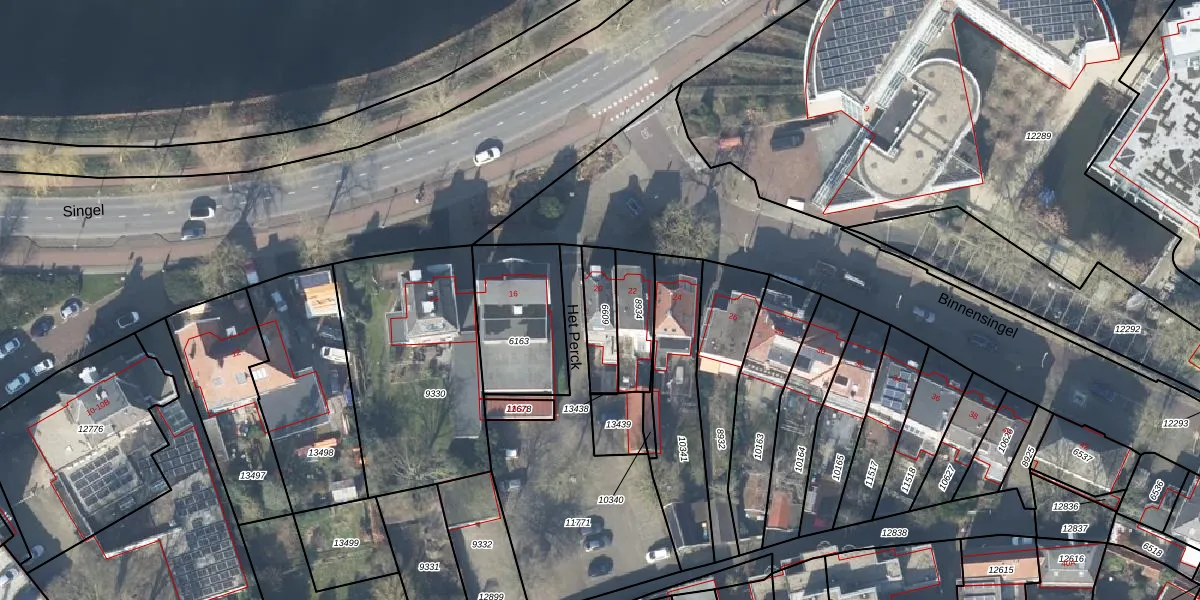 Het perceel waarop Binnensingel 20 staat heeft een oppervlakte van 124 m². Dit is een middelgroot perceel. De perceeloppervlakte wordt geregistreerd door het Kadaster. Gedetailleerde informatie over de maten van dit perceel kunt u vinden in het rapport Kadastrale kaart met maatvoering van Binnensingel 20.
