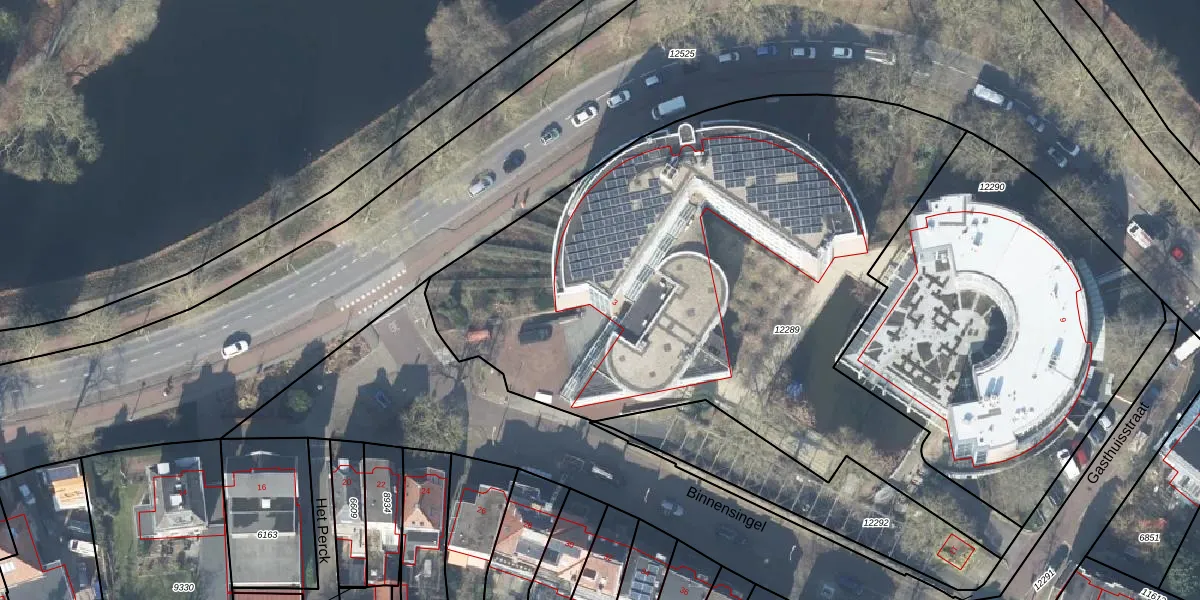 Het perceel waarop Binnensingel 5-F-21 staat heeft een oppervlakte van 3564 m². Dit is een zeer groot perceel. De perceeloppervlakte wordt geregistreerd door het Kadaster. Gedetailleerde informatie over de maten van dit perceel kunt u vinden in het rapport Kadastrale kaart met maatvoering van Binnensingel 5-F-21.