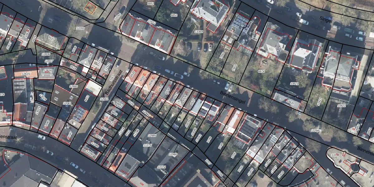 Het perceel waarop Binnensingel 62 staat heeft een oppervlakte van 110 m². Dit is een middelgroot perceel. De perceeloppervlakte wordt geregistreerd door het Kadaster. Gedetailleerde informatie over de maten van dit perceel kunt u vinden in het rapport Kadastrale kaart met maatvoering van Binnensingel 62.