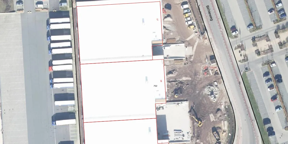 Het perceel waarop Birnieweg 19 staat heeft een oppervlakte van 1,7 ha. Dit is een zeer groot perceel. De perceeloppervlakte wordt geregistreerd door het Kadaster. Gedetailleerde informatie over de maten van dit perceel kunt u vinden in het rapport Kadastrale kaart met maatvoering van Birnieweg 19.