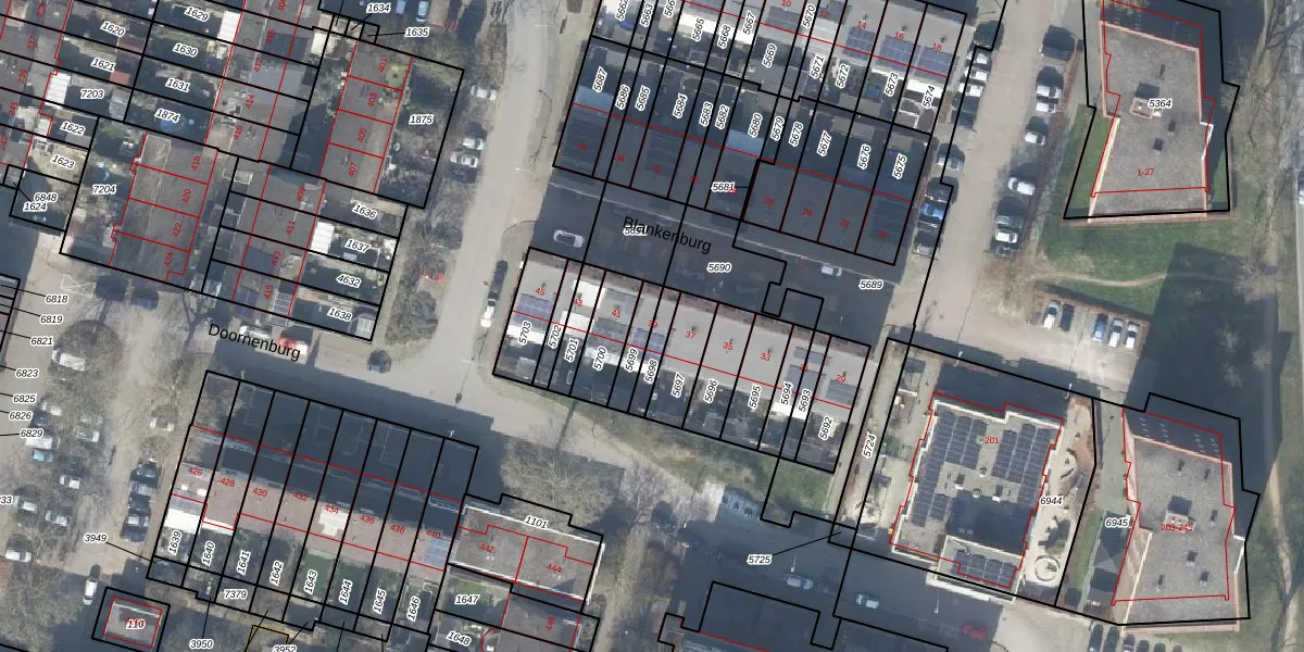 Gebruik de zoekbalk of klik op een perceel voor informatie over de adressen binnen dit perceel.