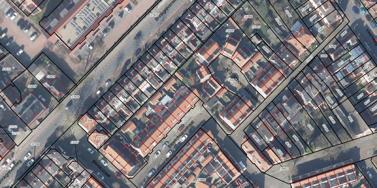 Het perceel waarop Bleekdwarsstraat 15 staat heeft een oppervlakte van 1170 m². Dit is een zeer groot perceel. De perceeloppervlakte wordt geregistreerd door het Kadaster. Gedetailleerde informatie over de maten van dit perceel kunt u vinden in het rapport Kadastrale kaart met maatvoering van Bleekdwarsstraat 15.