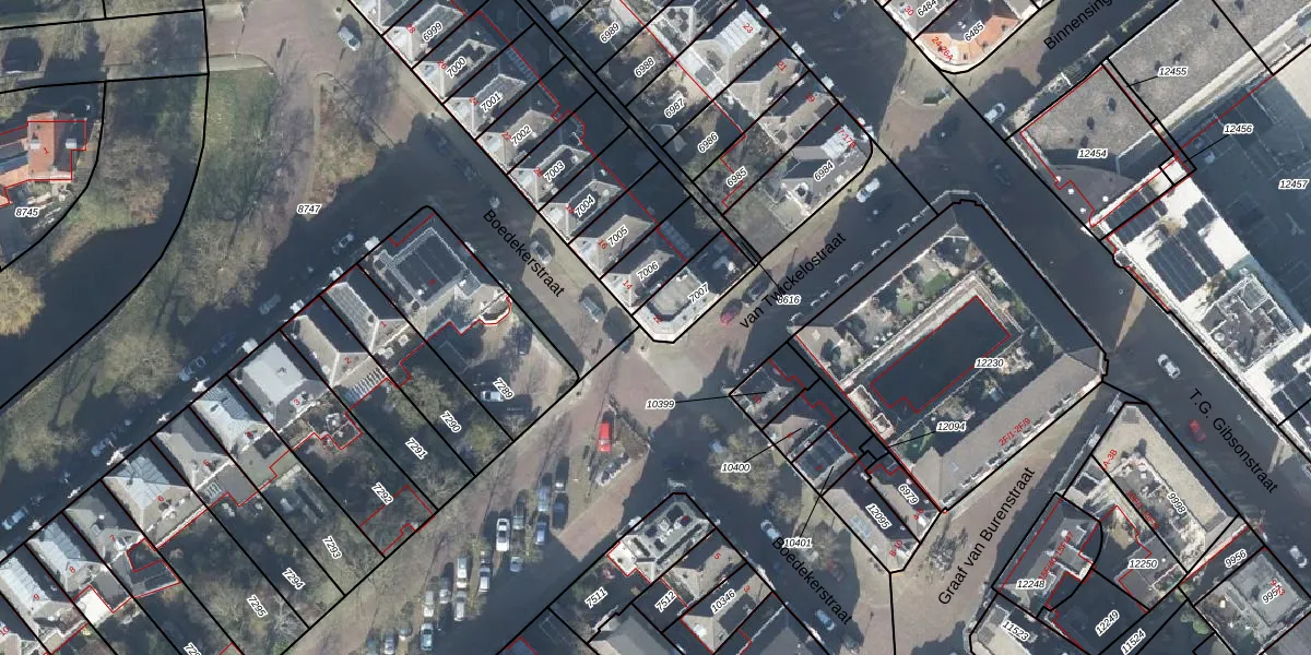 Het perceel waarop Boedekerstraat 12 staat heeft een oppervlakte van 142 m². Dit is een middelgroot perceel. De perceeloppervlakte wordt geregistreerd door het Kadaster. Gedetailleerde informatie over de maten van dit perceel kunt u vinden in het rapport Kadastrale kaart met maatvoering van Boedekerstraat 12.