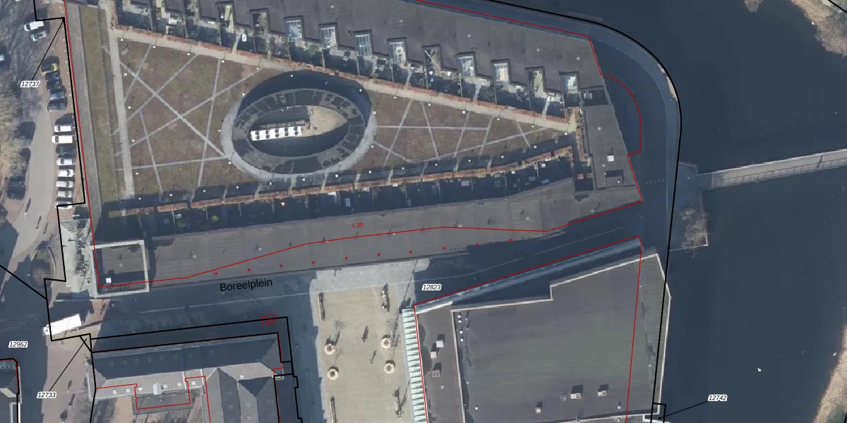 Het perceel waarop Boreelplein 20 staat heeft een oppervlakte van 2,0 ha. Dit is een zeer groot perceel. De perceeloppervlakte wordt geregistreerd door het Kadaster. Gedetailleerde informatie over de maten van dit perceel kunt u vinden in het rapport Kadastrale kaart met maatvoering van Boreelplein 20.