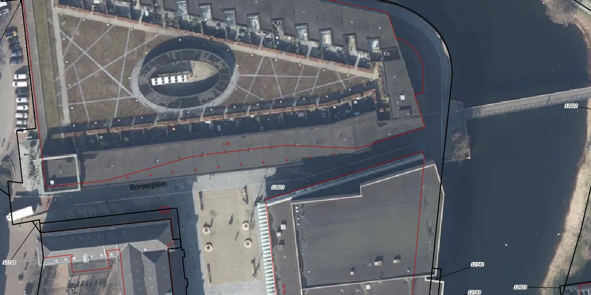 Het perceel waarop Boreelplein 9 staat heeft een oppervlakte van 2,0 ha. Dit is een zeer groot perceel. De perceeloppervlakte wordt geregistreerd door het Kadaster. Gedetailleerde informatie over de maten van dit perceel kunt u vinden in het rapport Kadastrale kaart met maatvoering van Boreelplein 9.