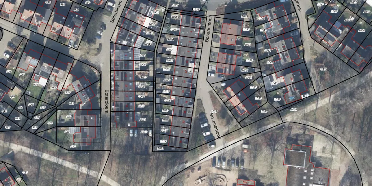 Het perceel waarop Bosanemoon 16 staat heeft een oppervlakte van 108 m². Dit is een middelgroot perceel. De perceeloppervlakte wordt geregistreerd door het Kadaster. Gedetailleerde informatie over de maten van dit perceel kunt u vinden in het rapport Kadastrale kaart met maatvoering van Bosanemoon 16.