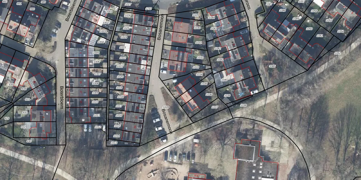 Gebruik de zoekbalk of klik op een perceel voor informatie over de adressen binnen dit perceel.