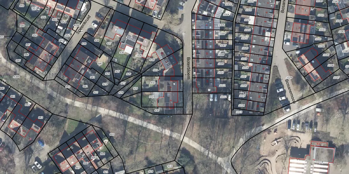 Gebruik de zoekbalk of klik op een perceel voor informatie over de adressen binnen dit perceel.