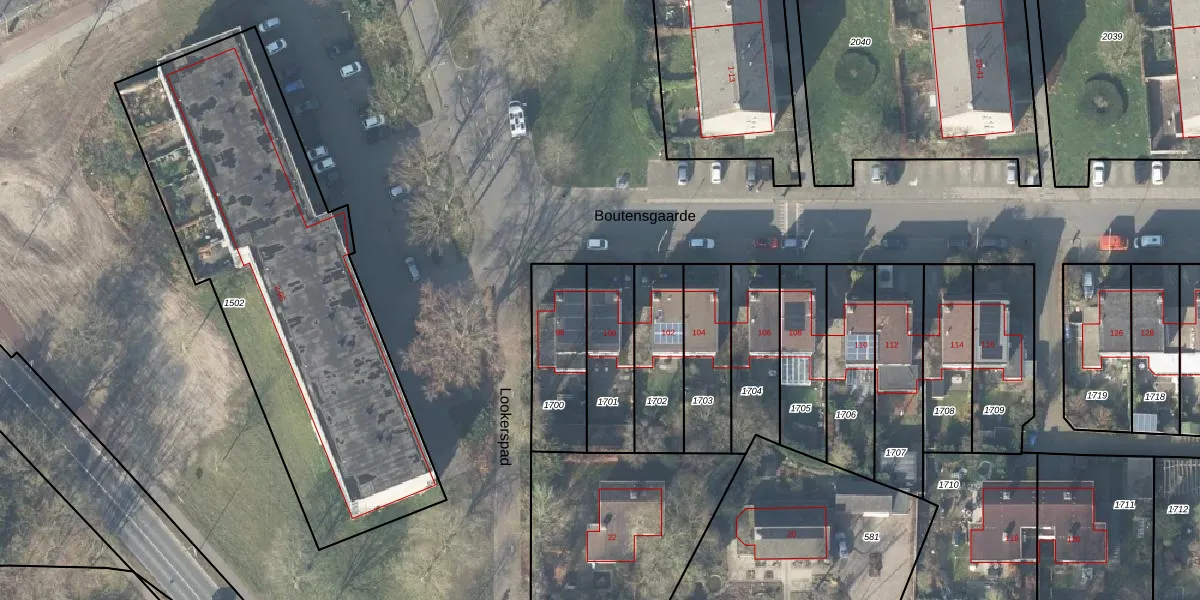 Gebruik de zoekbalk of klik op een perceel voor informatie over de adressen binnen dit perceel.