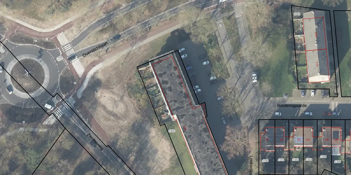 Het perceel waarop Boutensgaarde 34 staat heeft een oppervlakte van 2047 m². Dit is een zeer groot perceel. De perceeloppervlakte wordt geregistreerd door het Kadaster. Gedetailleerde informatie over de maten van dit perceel kunt u vinden in het rapport Kadastrale kaart met maatvoering van Boutensgaarde 34.