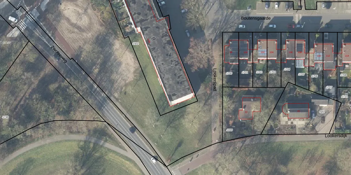 Het perceel waarop Boutensgaarde 44 staat heeft een oppervlakte van 2047 m². Dit is een zeer groot perceel. De perceeloppervlakte wordt geregistreerd door het Kadaster. Gedetailleerde informatie over de maten van dit perceel kunt u vinden in het rapport Kadastrale kaart met maatvoering van Boutensgaarde 44.