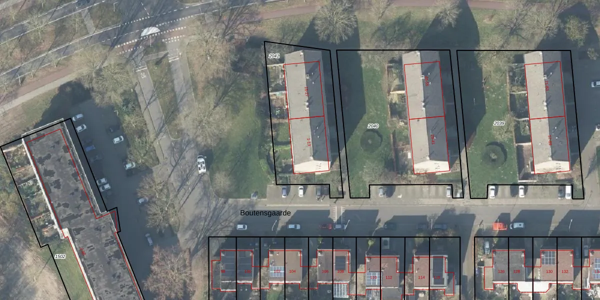 Het perceel waarop Boutensgaarde 7 staat heeft een oppervlakte van 1019 m². Dit is een zeer groot perceel. De perceeloppervlakte wordt geregistreerd door het Kadaster. Gedetailleerde informatie over de maten van dit perceel kunt u vinden in het rapport Kadastrale kaart met maatvoering van Boutensgaarde 7.
