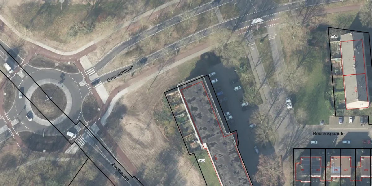Het perceel waarop Boutensgaarde 96 staat heeft een oppervlakte van 2047 m². Dit is een zeer groot perceel. De perceeloppervlakte wordt geregistreerd door het Kadaster. Gedetailleerde informatie over de maten van dit perceel kunt u vinden in het rapport Kadastrale kaart met maatvoering van Boutensgaarde 96.
