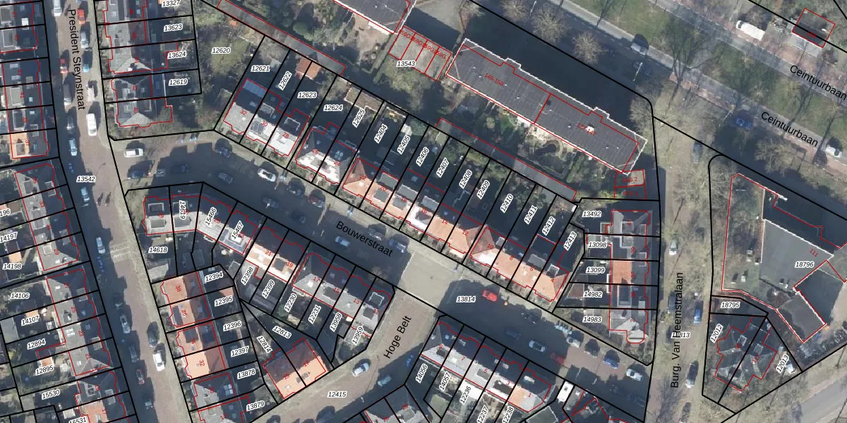Gebruik de zoekbalk of klik op een perceel voor informatie over de adressen binnen dit perceel.