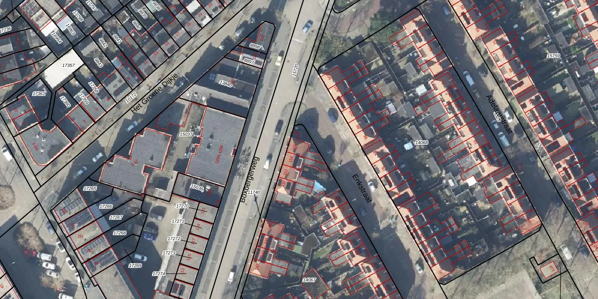 Het perceel waarop Boxbergerweg 156 staat heeft een oppervlakte van 2481 m². Dit is een zeer groot perceel. De perceeloppervlakte wordt geregistreerd door het Kadaster. Gedetailleerde informatie over de maten van dit perceel kunt u vinden in het rapport Kadastrale kaart met maatvoering van Boxbergerweg 156.
