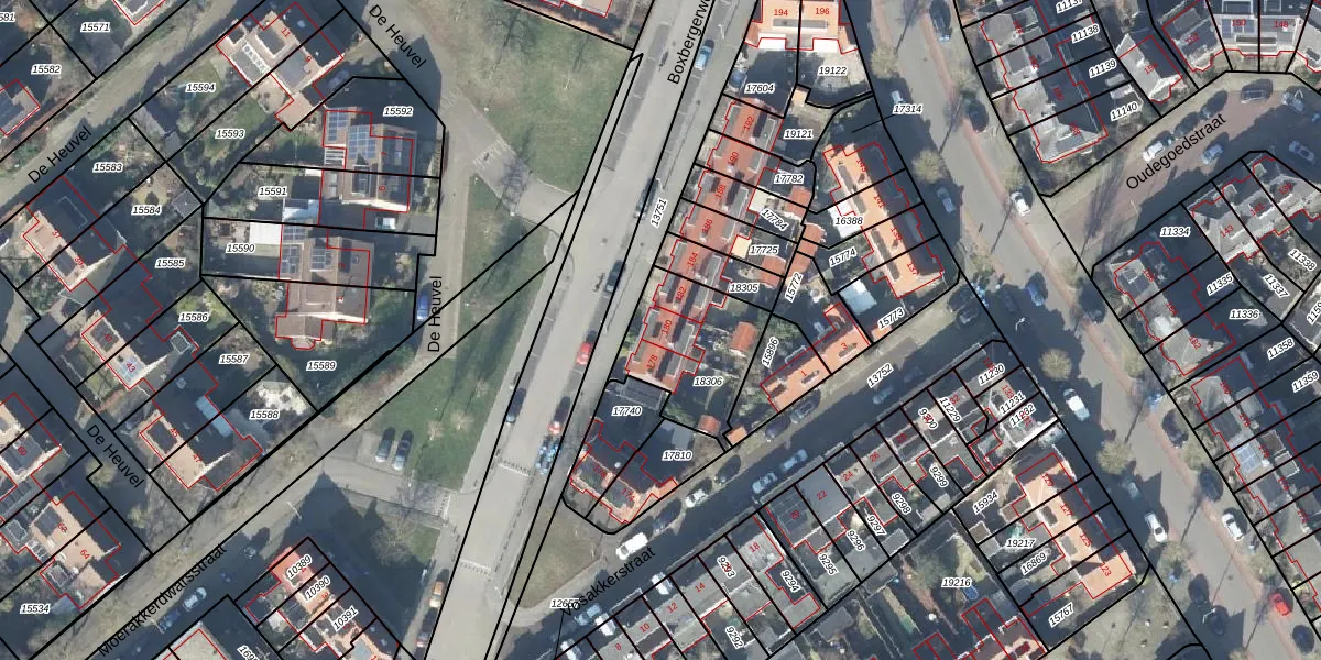 Het perceel waarop Boxbergerweg 180 staat heeft een oppervlakte van 370 m². Dit is een groot perceel. De perceeloppervlakte wordt geregistreerd door het Kadaster. Gedetailleerde informatie over de maten van dit perceel kunt u vinden in het rapport Kadastrale kaart met maatvoering van Boxbergerweg 180.