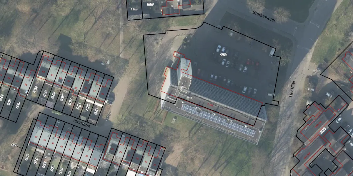 Bredenhorst 103 is gelegen op kadastraal perceel DVT00F2078. Deze kadastrale aanduiding is uniek en wordt gebruikt door het Kadaster om eigendomsrechten en andere zakelijke rechten vast te leggen. Het perceel maakt onderdeel uit van de kadastrale gemeente Deventer.