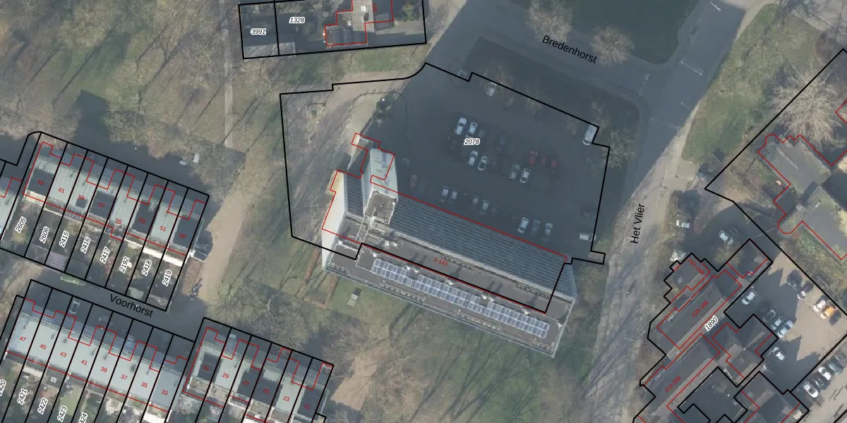 Het perceel waarop Bredenhorst 23 staat heeft een oppervlakte van 3170 m². Dit is een zeer groot perceel. De perceeloppervlakte wordt geregistreerd door het Kadaster. Gedetailleerde informatie over de maten van dit perceel kunt u vinden in het rapport Kadastrale kaart met maatvoering van Bredenhorst 23.