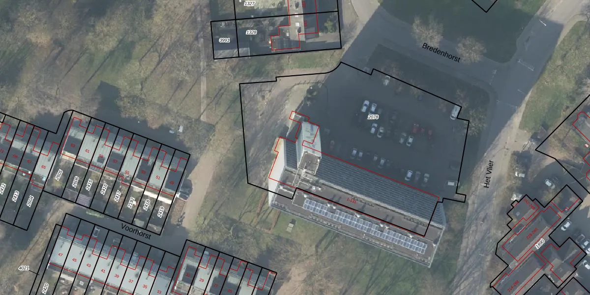 Het perceel waarop Bredenhorst 33 staat heeft een oppervlakte van 3170 m². Dit is een zeer groot perceel. De perceeloppervlakte wordt geregistreerd door het Kadaster. Gedetailleerde informatie over de maten van dit perceel kunt u vinden in het rapport Kadastrale kaart met maatvoering van Bredenhorst 33.