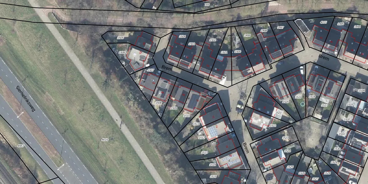 Het perceel waarop Brem 68 staat heeft een oppervlakte van 215 m². Dit is een middelgroot perceel. De perceeloppervlakte wordt geregistreerd door het Kadaster. Gedetailleerde informatie over de maten van dit perceel kunt u vinden in het rapport Kadastrale kaart met maatvoering van Brem 68.
