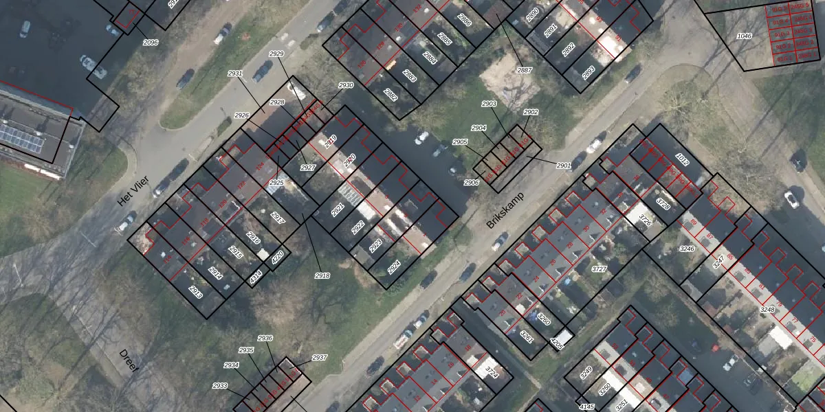 Gebruik de zoekbalk of klik op een perceel voor informatie over de adressen binnen dit perceel.