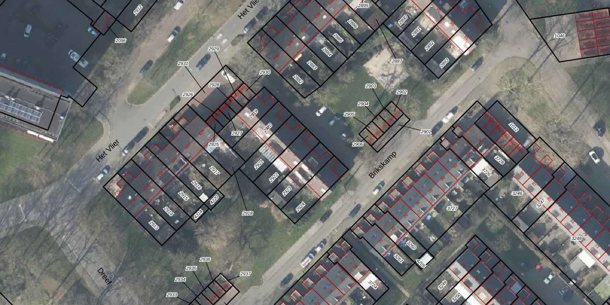 Gebruik de zoekbalk of klik op een perceel voor informatie over de adressen binnen dit perceel.