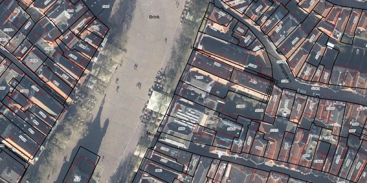Het perceel waarop Brink 26 staat heeft een oppervlakte van 525 m². Dit is een groot perceel. De perceeloppervlakte wordt geregistreerd door het Kadaster. Gedetailleerde informatie over de maten van dit perceel kunt u vinden in het rapport Kadastrale kaart met maatvoering van Brink 26.