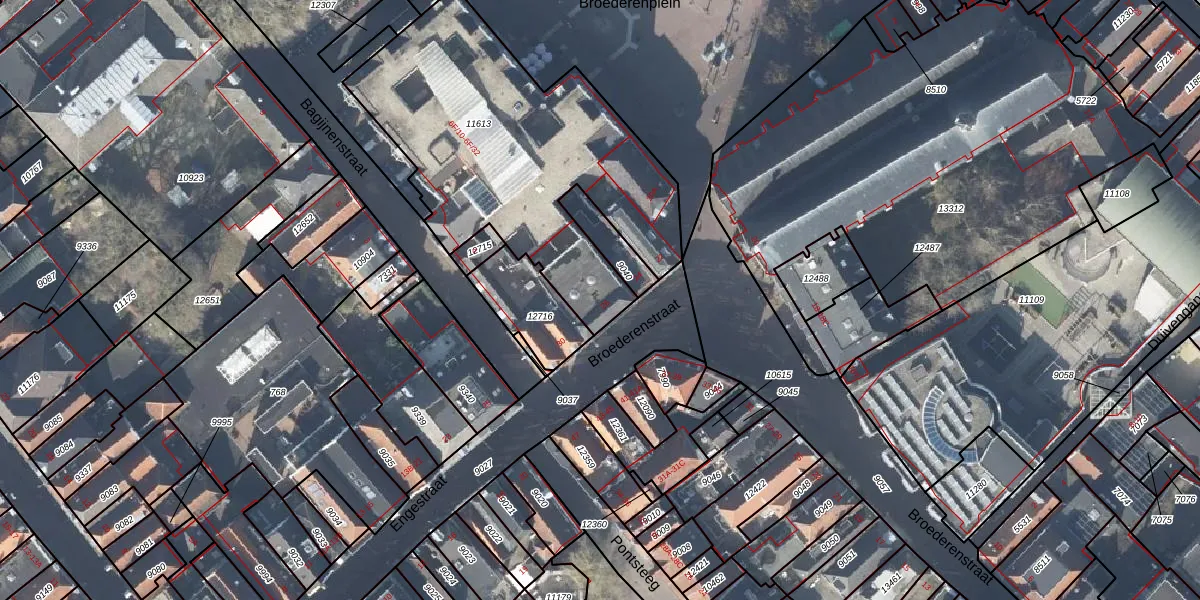 Het perceel waarop Broederenstraat 26 staat heeft een oppervlakte van 1550 m². Dit is een zeer groot perceel. De perceeloppervlakte wordt geregistreerd door het Kadaster. Gedetailleerde informatie over de maten van dit perceel kunt u vinden in het rapport Kadastrale kaart met maatvoering van Broederenstraat 26.