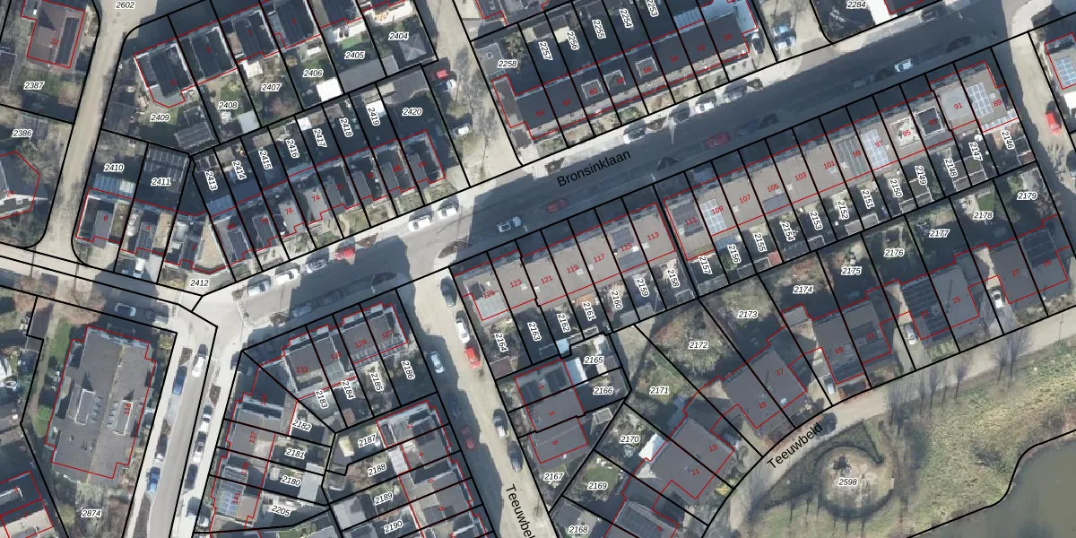 Bronsinklaan 121 is gelegen op kadastraal perceel DVT00M2162. Deze kadastrale aanduiding is uniek en wordt gebruikt door het Kadaster om eigendomsrechten en andere zakelijke rechten vast te leggen. Het perceel maakt onderdeel uit van de kadastrale gemeente Deventer.
