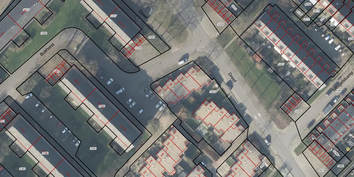 Het perceel waarop Bukhorst 156 staat heeft een oppervlakte van 1466 m². Dit is een zeer groot perceel. De perceeloppervlakte wordt geregistreerd door het Kadaster. Gedetailleerde informatie over de maten van dit perceel kunt u vinden in het rapport Kadastrale kaart met maatvoering van Bukhorst 156.