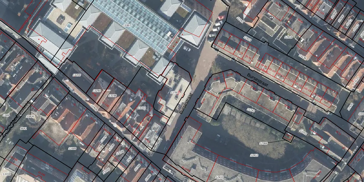 Bursestraat 15 is gelegen op kadastraal perceel DVT00E11787. Deze kadastrale aanduiding is uniek en wordt gebruikt door het Kadaster om eigendomsrechten en andere zakelijke rechten vast te leggen. Het perceel maakt onderdeel uit van de kadastrale gemeente Deventer.